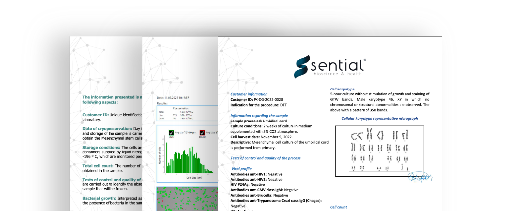Diseñado para evaluar las muestras de donde se obtendrán las células madre antes de procesarlas, en este análisis se verifica su seguridad a través de un perfil microbiológico completo, y un cariotipo confirma su calidad genética mediante la tinción de bandas GTW.